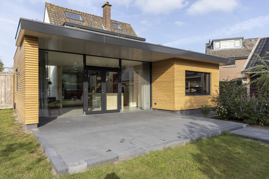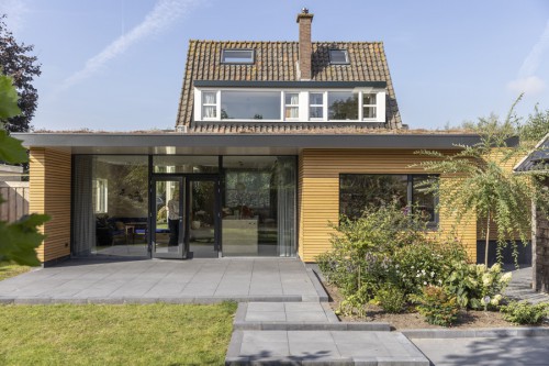 In Nederhorst den Berg werd een bestaande woning volledig vernieuwd en uitgebreid. Wat begon als een te kleine, verouderde woning groeide onder leiding van Kraal Architecten uit Utrecht en Van Velthuizen Bouw uit tot een moderne, duurzame gezinswoning met karakter.