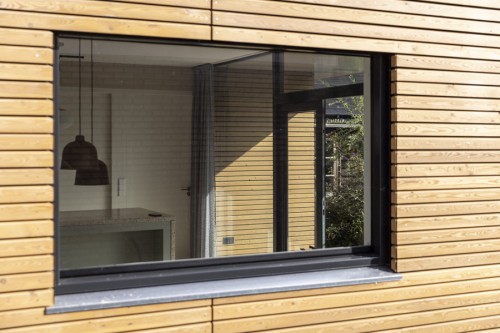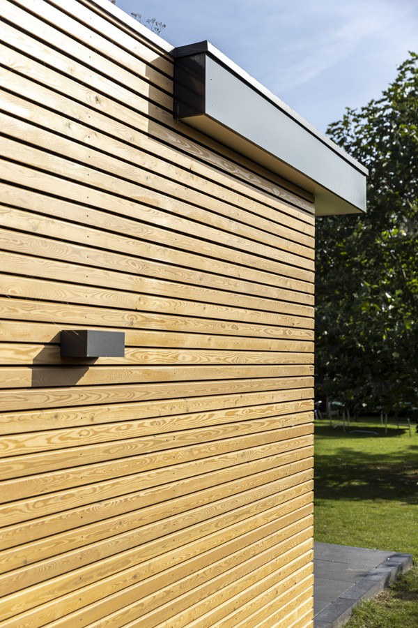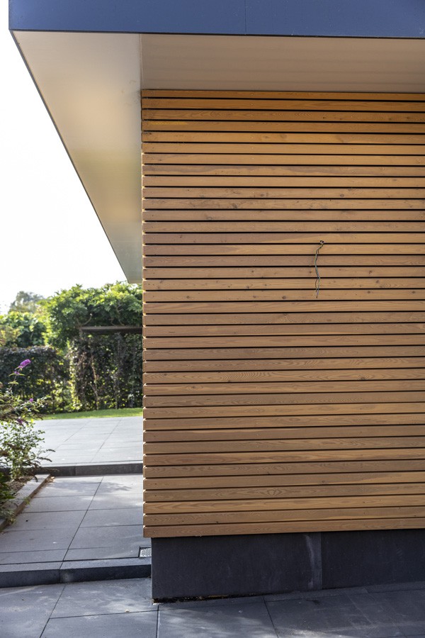 Van Velthuizen Bouw verzorgde de uitvoering van het volledige traject. Van fundering en heiwerk tot isolatie, installaties en afwerking. Duurzaamheid en kwaliteit stonden daarbij centraal. De gevels zijn afgewerkt met larikshouten delen en het dak is voorzien van een mos-sedumlaag. Binnen zorgen strakke lichtlijnen voor een rustig en eigentijds geheel.