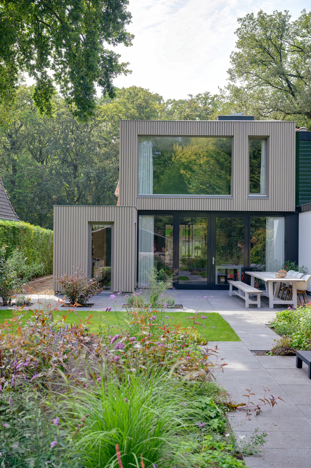 Van Velthuizen Bouw realiseerde een ingrijpende renovatie en uitbreiding van een bestaande woning in Driebergen. De woning was verouderd, toe aan verduurzaming en bood onvoldoende ruimte voor het dagelijks leven. Met een aanbouw van 45 m² op de begane grond en 30 m² op de eerste verdieping kreeg het huis een compleet nieuwe indeling en een eigentijds karakter.