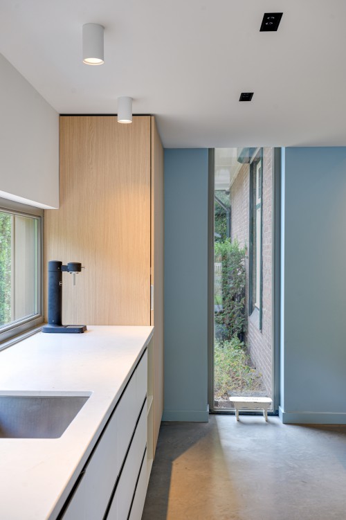 Van Velthuizen Bouw verzorgde het gehele traject van A tot Z: van sloop en constructiewerk tot isolatie, installaties, maatwerkinterieur en afwerking. Bijzonder aan dit project zijn de duurzame toepassingen, waaronder een hybride ketel en zonnepanelen. Daarnaast zorgen stalen binnen kozijnen en een op maat gemaakte keuken voor een moderne, stijlvolle uitstraling.